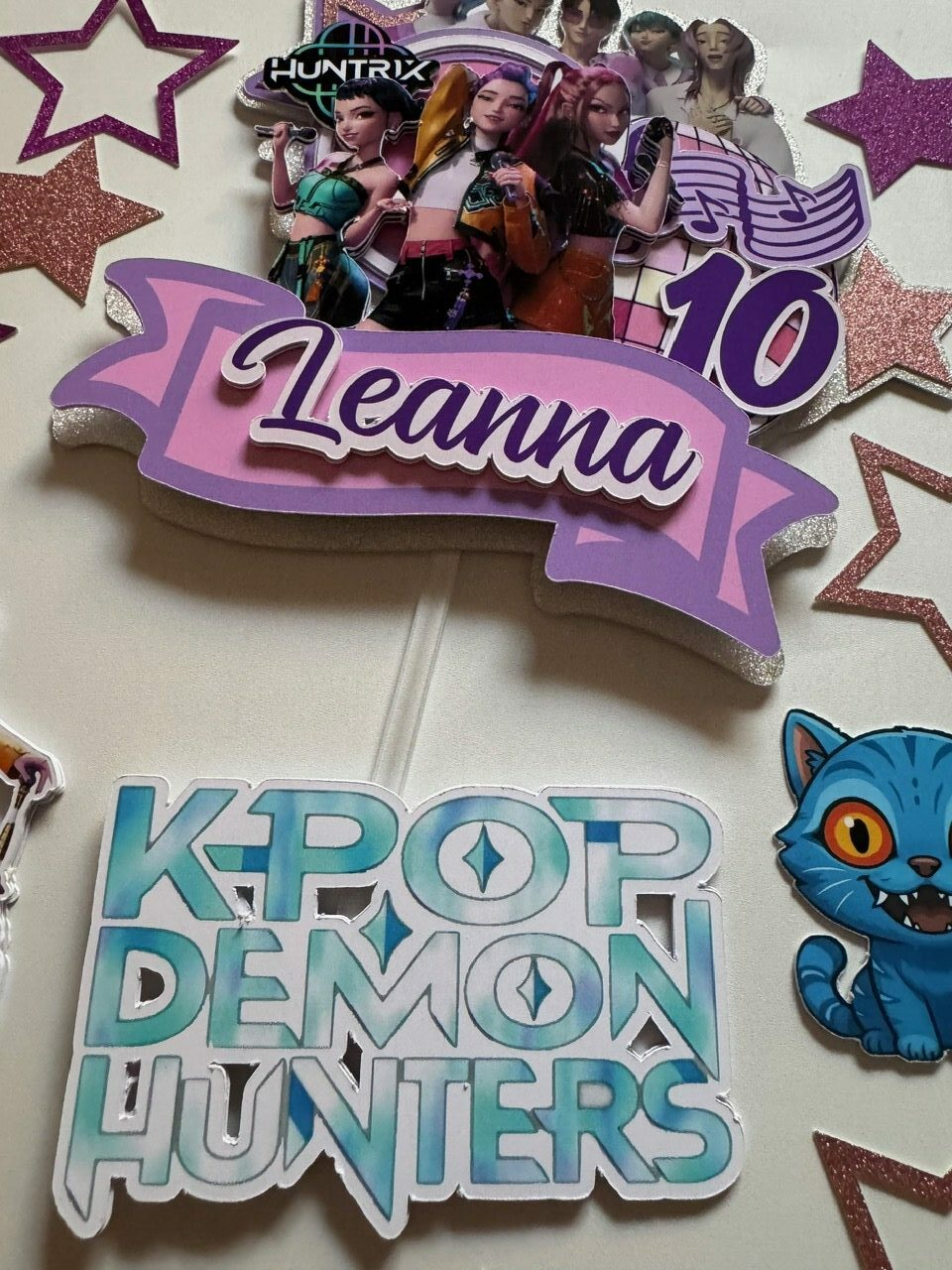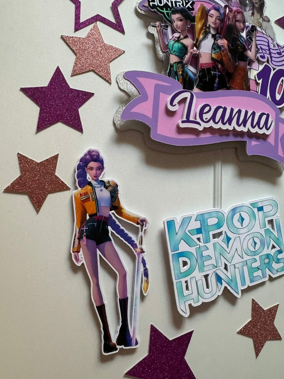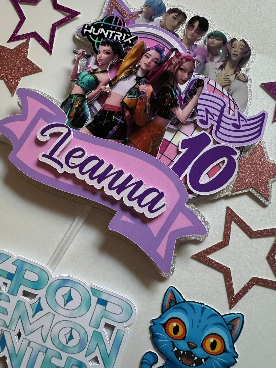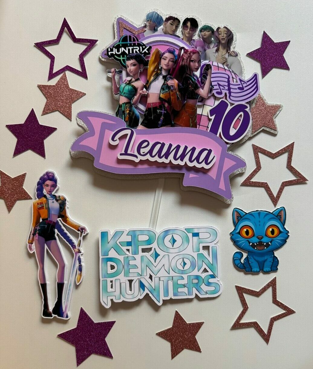 un toppers face KPOP DEMON HUNTERS à coller sur l’avant du gâteau